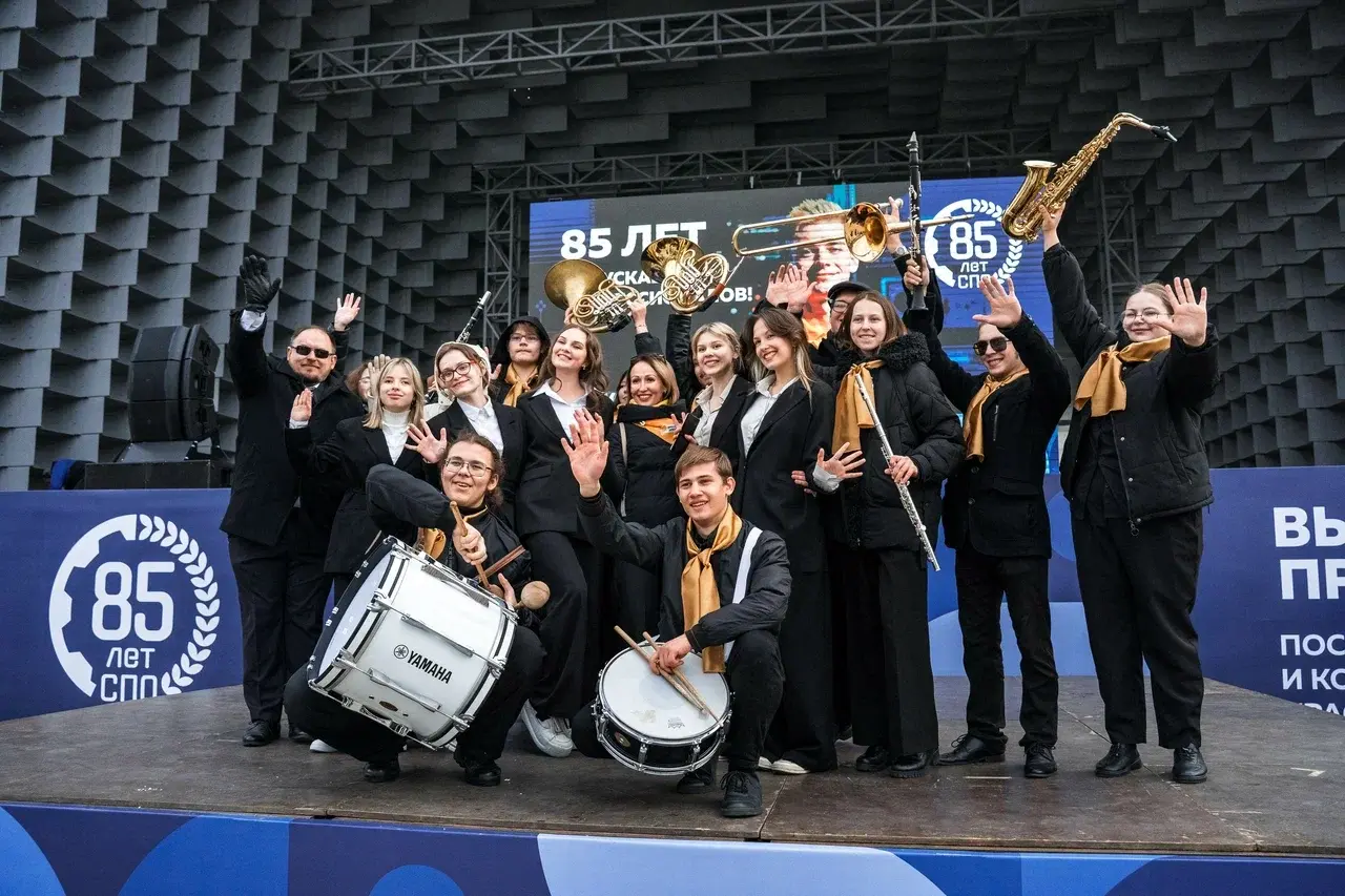 Праздник завершился флэшмобом – студенты выстроились в аббревиатуру «СПО», символизируя единство и значимость системы среднего профессионального образования!