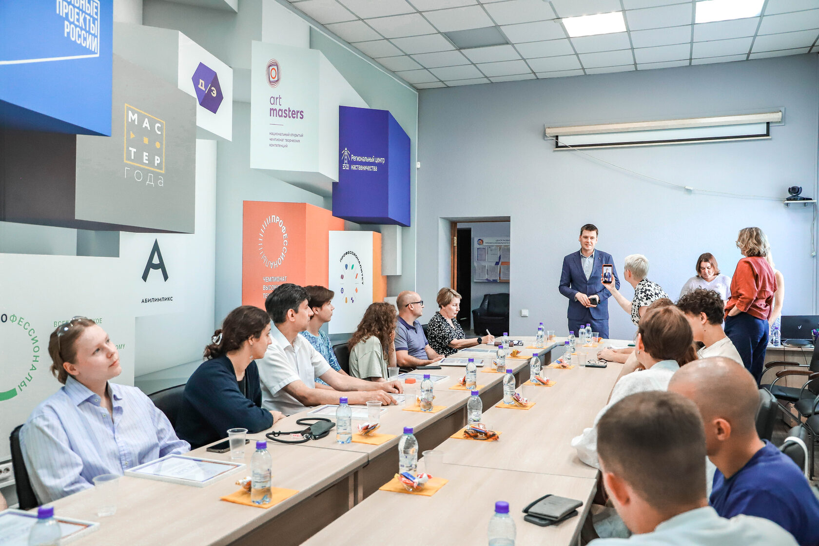 Есть у нас одна замечательная традиция - встречаться с финалистами конкурсов профессионального мастерства и обмениваться мнениями и впечатлениями. Так, финалисты Чемпионата «Профессионалы», который прошел в Нижнем Новгороде в мае, напутствовали тех, кому предстоит защищать честь региона в Калуге в конце августа. Ребята рассказывали о поездке, о том, как лучше подготовиться к соревнованиям, делились наработанными секретами.