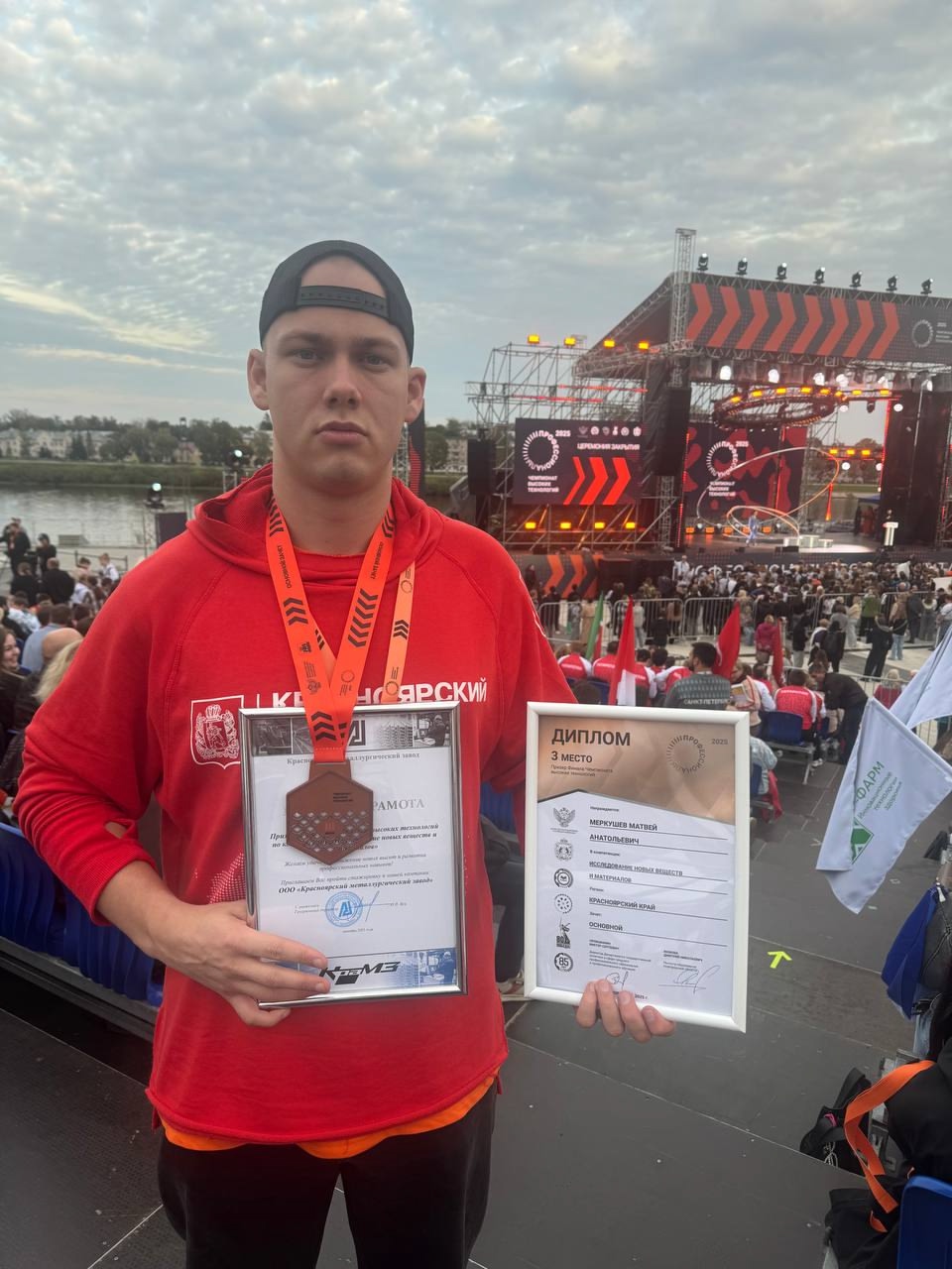 Матвей Меркушев, студент Красноярского индустриально-металлургического техникума, стал бронзовым призером в основном зачете по компетенции Исследование новых веществ и материалов. Поздравляем нашего победителя и его наставника Сергея Федосеева с заслуженной наградой!